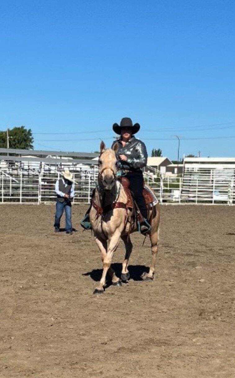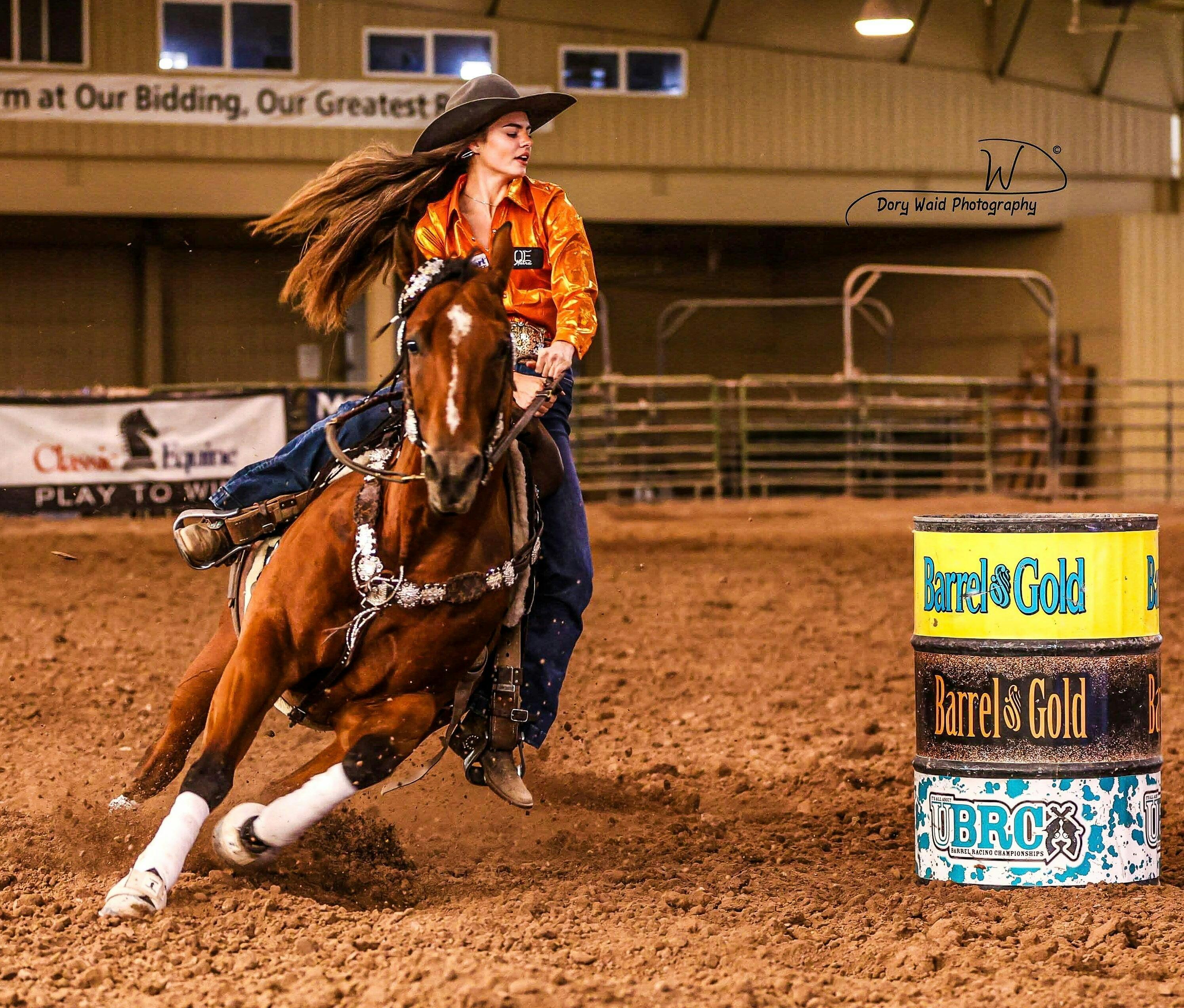 Whether I’m walking the grounds, warming up, or going full speed around the barrels, this shirt stays put and keeps me cool. The design is stunning—western, bold, and totally show-ready. Plus, it washes beautifully and holds up to long days in the dirt.